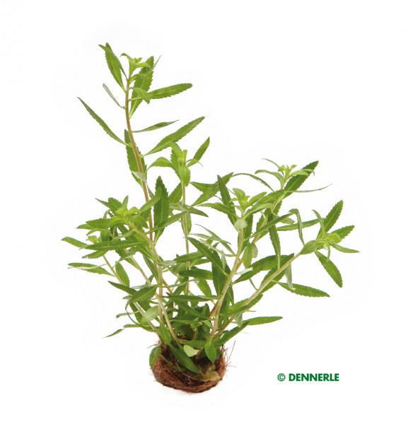 Proserpinaca palustris Kuba Kammblatt 10 - 25 cm Höhe bis ca. 20 cm Breite Temp. 21-29°C Lichtbedarf normal - hoch pH 6 - 7,5 sehr schöne seltene Pflanze aus Cuba die Pflanzen zeigen bei submerser bzw. emerser Kultur verschiedene Blattformen, unter Wasser bilden sich nach einiger Zeit die feinen nadelförmigen Blätter bei guten Lichtverhältnissen rot-kupferfarbene Blätter
