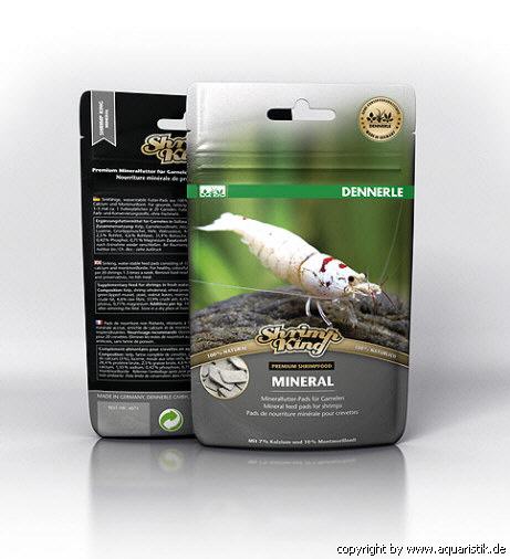 Sinkfähige, wasserstabile Futter-Pads aus 100% natürlichen Zutaten zur gezielten Mineralergänzung. Shrimp King Mineral enthält neben viele hochwertigen Zutaten, wie sie auch beim Hauptfutter verwendet werden, eine Extra-Portion Mineralien. Das bewährte Tonmineral Montmorillonit (10%), reines Calciumcarbonat (5%) und wertvolle Kalkrotalgen (10%) versorgen alle Garnelen mit reichlich Calcium und anderen Mineralien sowie lebenswichtigen Spurenelementen. Insbesondere das natürliche Calcium der Kalkrotalgen weist eine hohe Bioverfügbarkeit auf und kann von den Garnelen besonders gut genutzt werden. Garnelen müssen im Gegensatz zu Krebsen regelmässig Mineralien aufnehmen, da sie keine Gastrolithen (Magensteine) besitzen, um diese zu speichern.