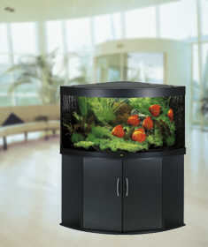 Die Aquarien der Reihe Trigon mit der großen gebogenen Frontscheibe machen jede Zimmerecke zum dekorativen Blickfang!