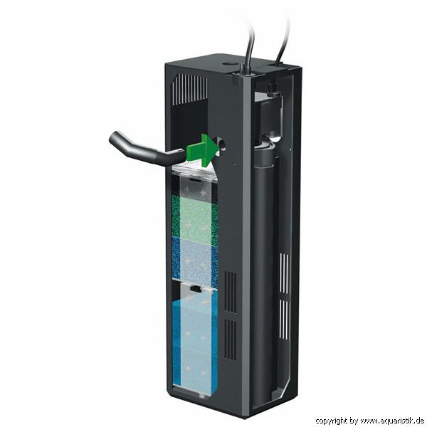 Das Juwel Bioflow Filter System verbindet einfachste Handhabung, bei geringem Pflegeaufwand, mit hocheffektiver mechanischer und biologischer Filterleistung. Durch die feste Verbindung des Filters mit dem Aquarium sind Schlauchverbindungen überflüssig und Undichtigkeiten ausgeschlossen. Das Wasser bleibt im Aquarium. Die Leistung der Pumpe wird nicht durch Schlauchkupplungen, Ansaugrohre, usw. - wie sie bei Außenfiltern notwendig sind - gemindert. Die Bioflow Pumpe ist in ihrer Kapazität so ausgelegt, dass die biologische Filterung nicht durch eine zu schnelle Durchströmung des Filtermaterials beeinträchtigt wird. Das große Filtervolumen und das Doppelstromprinzip sorgen dabei für eine hervorragende mechanische Filterung: das Ergebnis ist kristallklares Wasser. In Minutenschnelle können Filterwatte oder -schwämme ausgewechselt oder zum Reinigen entnommen werden. Der Bioflow Filter bleibt dabei im Aquarium. Filtereinsätze für Filtermedien erlauben Ihnen die einfache und saubere Pflege.