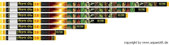 Die Exo Terra Repti Glo 2.0 ist eine Lichtquelle mit einer hohen Leistung an sichtbarem Licht und einem sehr hohen Farbwiedergabeindex (CRI); jedoch einer niedrigen UVB-Strahlung. Diese Lampe eignet sich für Schlangen, alle Amphibien (Frösche, Kröten und Salamander) sowie nachtaktive Tiere. Pflanzen werden unter diesem Licht ebenso gedeihen. Dieses Licht ist ebenfalls eine perfekte Ergänzung zu einer UVB-Lampe, um sichtbares Licht zu verstärken.