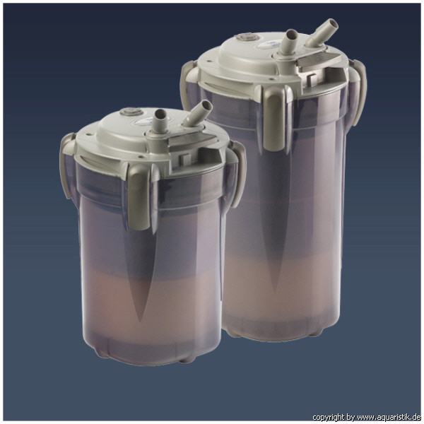 Einfache und sichere Befestigung für das Einsetzen des Filters ins Aquarium und schnell lösbare Halterung für den bequemen Zugang zu den mechanischen und biologischen Filtern. Der Filter ist so konstruiert, dass auch chemische Filtermaterialien verwendet werden können.