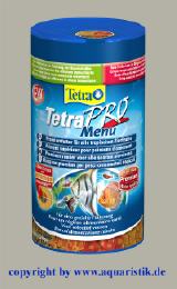 Die hier eingesetzten Crisps sind mit der Zwei-Farben-Technologie hergestellt: Der äußere Ring beinhaltet alle essentiellen Nährstoffe, der Kern besteht aus verschiedenen Zutaten und weist jeweils einen speziellen Zusatznutzen auf, der spezifische Fischbedürfnisse befriedigt. So sorgen die Crisps mit Spirulina-Alge für erhöhte Widerstandskraft, die gelben Crisps für mehr Energie dank der hochwertigen Omega-3-Fettsäuren. Die roten Crisps verstärken die leuchtenden Farben der Fische. Neu sind die orangenen Crisps, die mit ihrem hohen Anteil an Fischprotein gesundes Wachstum begünstigen. TetraPro Menu wird in der Dose mit 250 ml angeboten.