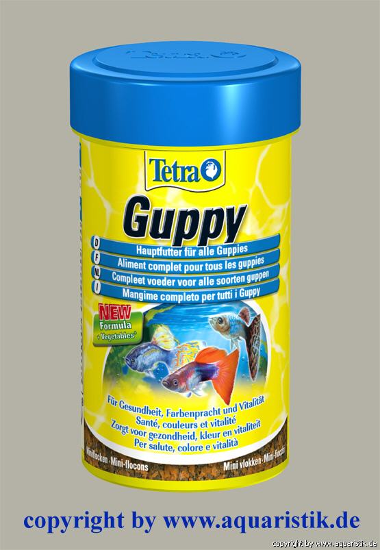 Hauptfutter für Guppys und andere lebendgebärende Zahnkarpfen. bringt die natürliche Farbenpracht zur vollen Entfaltung und fördert die Vitalität enthält natürliche Farbverstärker speziell über die Anteile in Garnelen und Spirulina-Algen