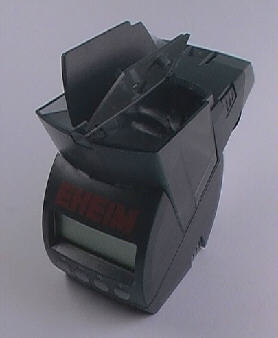 Neuer Futterautomat: Twin steht für 2 Futterkammern (2x80cm3). Es können auch unterschiedliche Futtersorten dosiert werden: Flockenfutter, Granulat, Sticks und Peletts. Die beiden Kammern sind getrennt steuerbar. So können Sie immer 2 Futterarten zu unterschiedlichen Zeiten füttern.