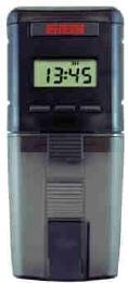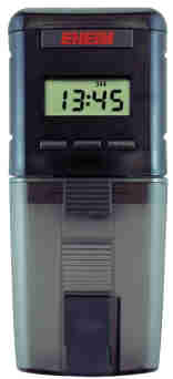 Elektronische Programmiersteuerung mit bis zu 4 Fütterzeiten. Wahlweise in kurzen oder längeren Intervallen durch zeitverzögerte Doppeldrehung. LCD Anzeige mit Uhrzeit. Das aktiv ventilierende Belüftungssystem sorgt für trockenes Futter bis zur letzten Flocke.