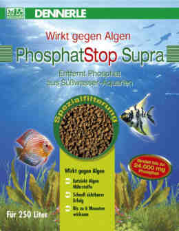 DENNERLE PhosphatStop Supra bindet überschüssiges Phosphat und überführt es in eine wasserunlösliche Form. Phosphat bedingtes Algenwachstum wird gebremst und kommt meist innerhalb weniger Wochen zum Stillstand. PhosphatStop Supra braucht nur wenig Platz im Filter, die Bio-Filterleistung bleibt voll erhalten.