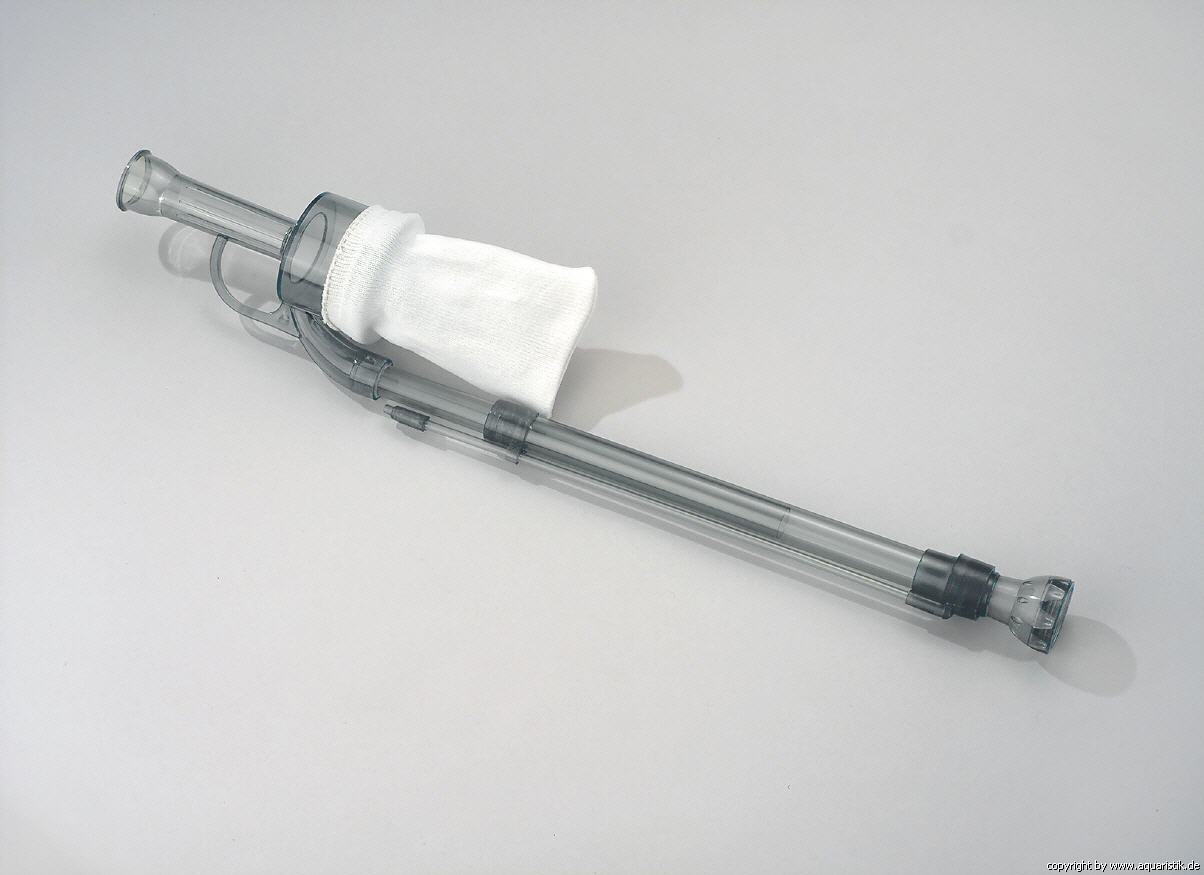 Wird an eine Membranpumpe (Luftpumpe/Durchlüfterpumpe nicht im Lieferumfang enthalten !) angeschlossen. Dann können Sie kleinere Aquarien - bis ca 54 Liter (60er Becken) problemlos reinigen.